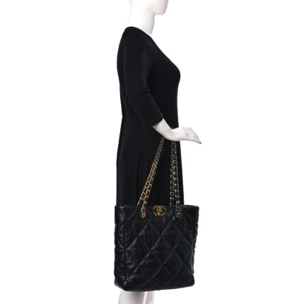 Lambskin Quilted Chanel 19 Shopping Bag Black