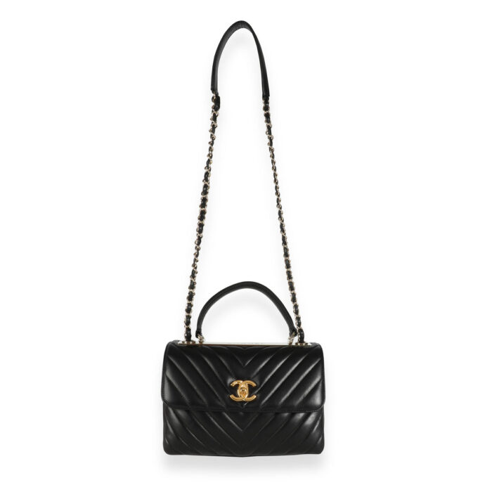 Chanel Black Lambskin Chevron Quilted Trendy CC Top Handle Flap Bag