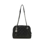 Chanel Black Quilted Lambskin Medium Mademoiselle Bowling Bag Silver Hardware