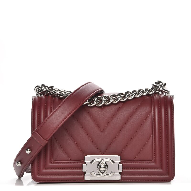 Chanel Calfskin Chevron Quilted Small Boy Flap Burgundy Sold Out