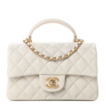 Chanel Caviar Quilted Mini Top Handle Rectangular Flap Beige