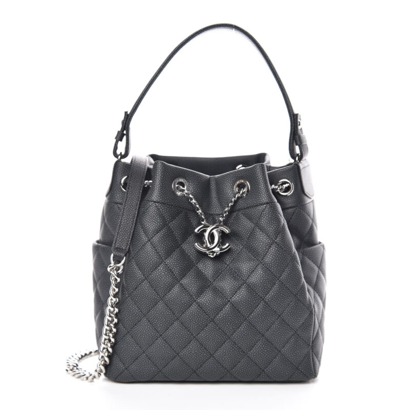 Chanel Grained Calfskin Quilted Small Chain Bucket Bag Grey