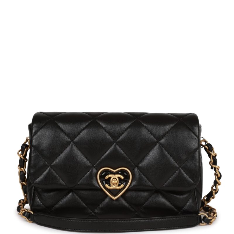 Chanel Heart Small Flap Bag Black Lambskin Antique Gold Hardware
