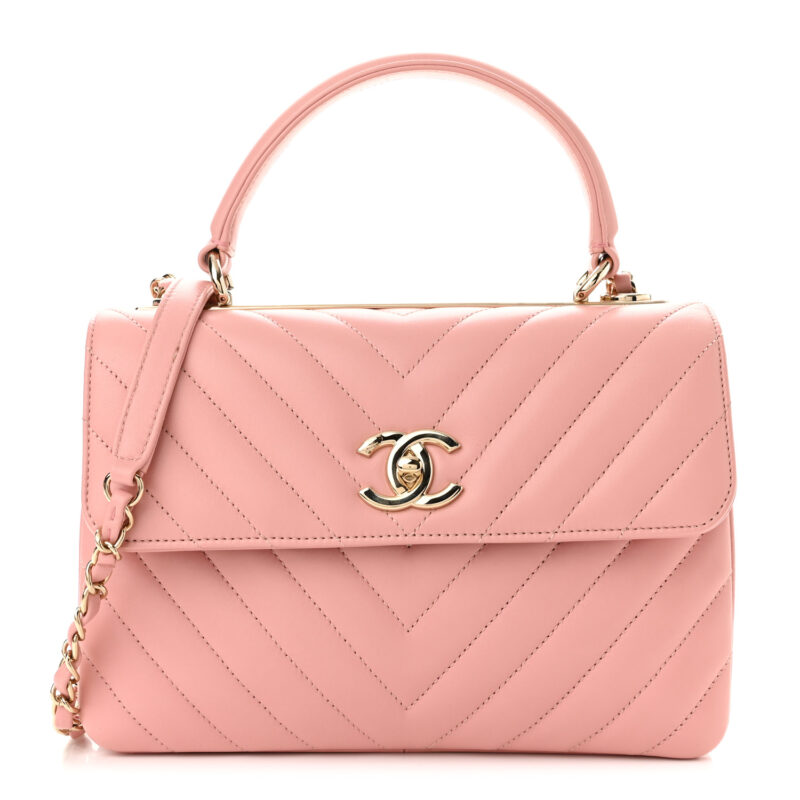 Chanel Lambskin Chevron Quilted Small Trendy CC Dual Handle Flap Bag Light Pink