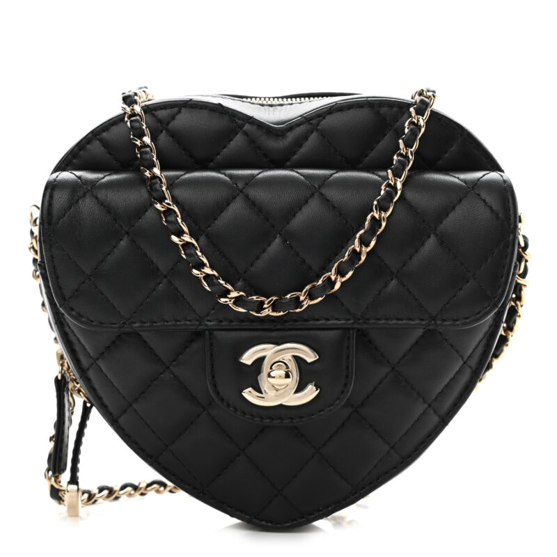 Chanel Lambskin Quilted CC In Love Heart Bag Black