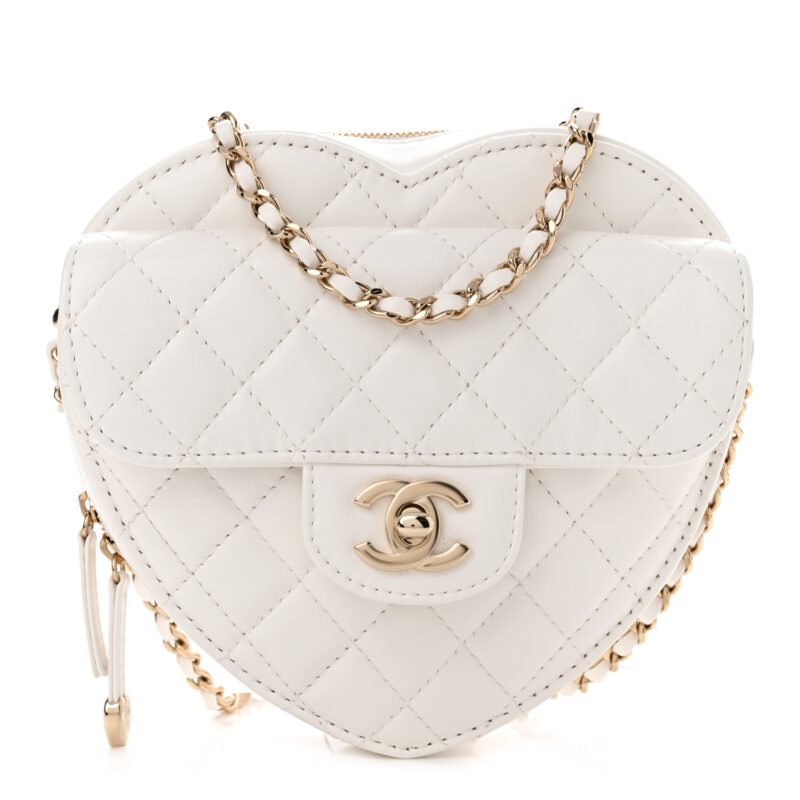 Chanel Lambskin Quilted CC In Love Heart Bag White