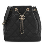 Chanel Lambskin Quilted Chain Drawstring Bag Black