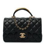Chanel Lambskin Quilted Metal Mini Top Handle Rectangular Flap Black