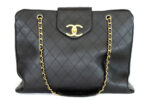 Chanel Deerskin Chevron Large CC Chain Bucket Drawstring Bag Black