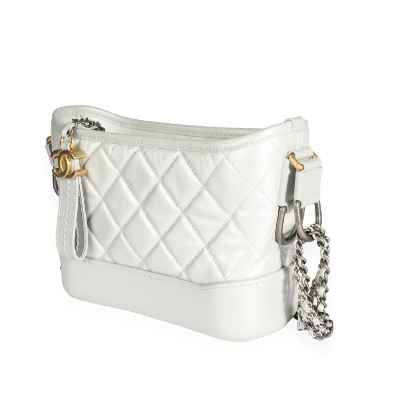 Chanel Metallic Silver Quilted Calfskin Small Gabrielle Hobo