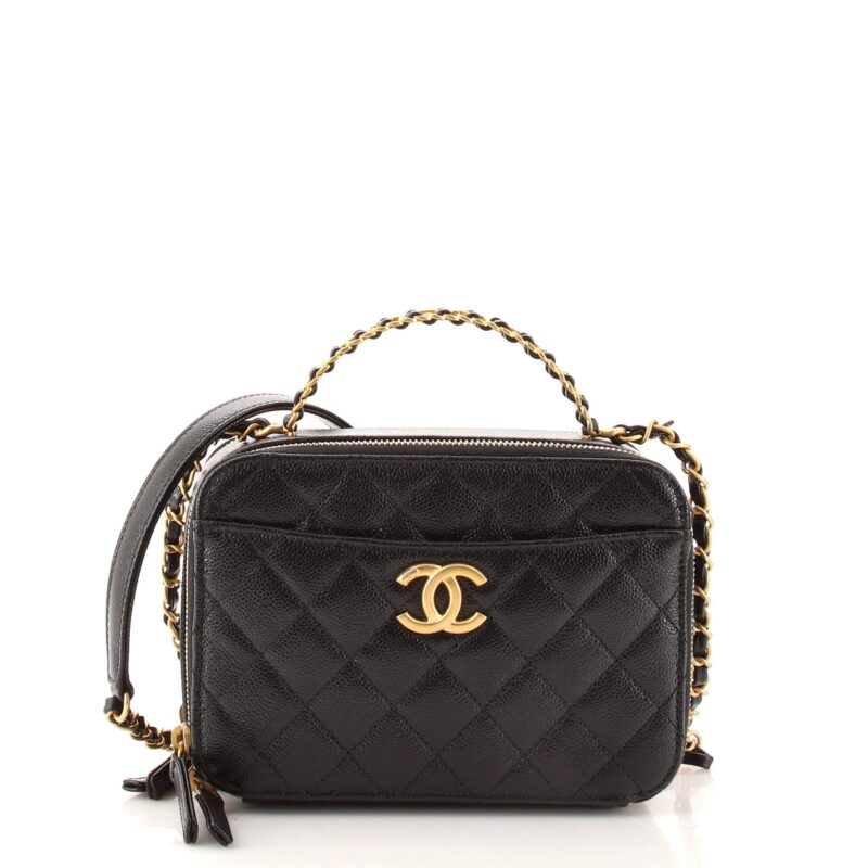 Chanel Pick Me Up Logo Handle Vanity Case Quilted Caviar Small