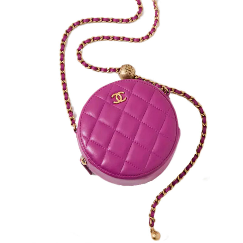 Chanel Quilted Round Pearl Crush Clutch Chain Lambskin Gold Hardware