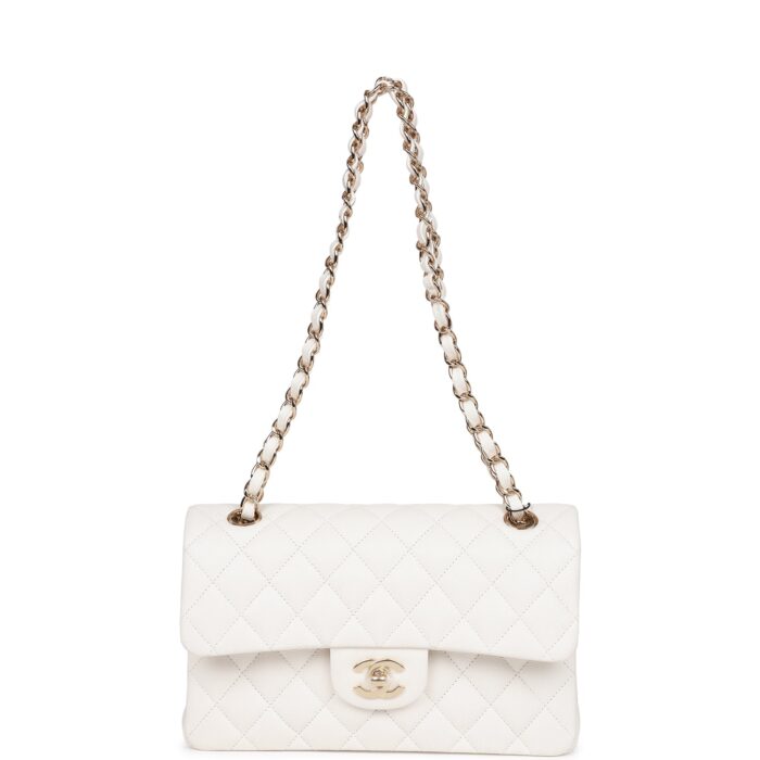 Chanel Small Classic Double Flap White Caviar Light Gold Hardware