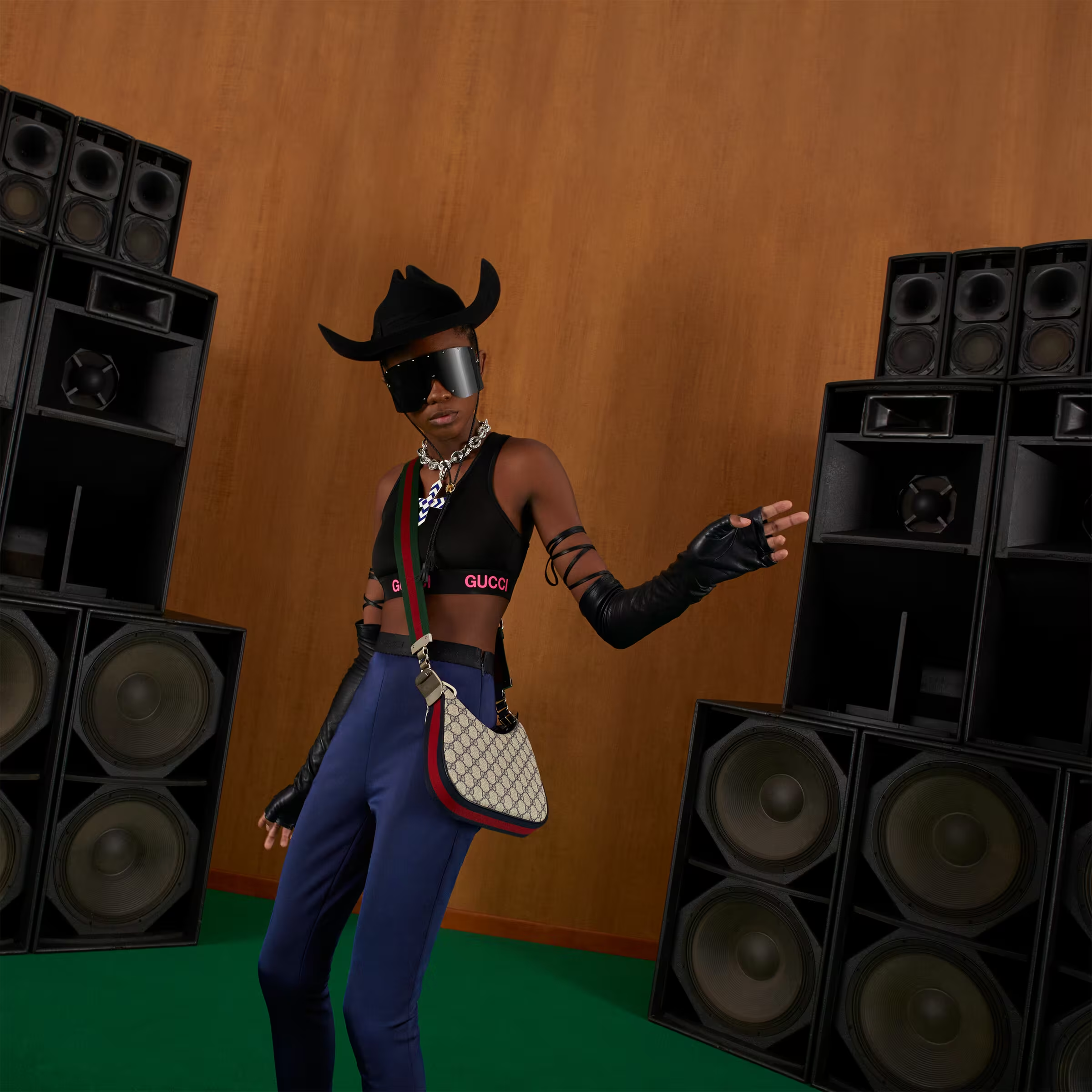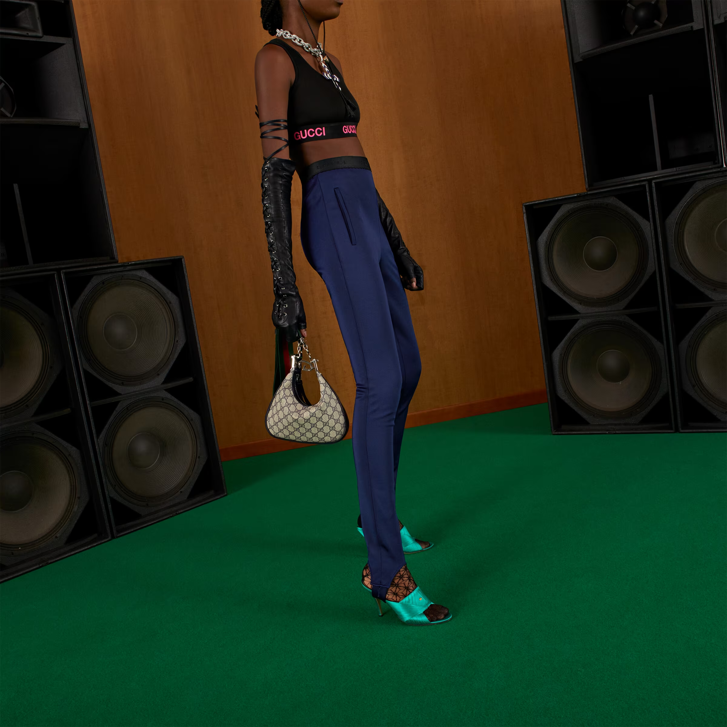 An ode to the timeless Hollywood glamour that shaped Gucci Love Parade, classic elements from the House’s archives are reintroduced. Distinguished by its crescent moon shape, this small shoulder bag further defined by a G shaped hook closure. Paired with soft materials, the heritage hardware creates a refined design with vintage appeal. GG Supreme canvas in beige and blue accentuate the logo feel.