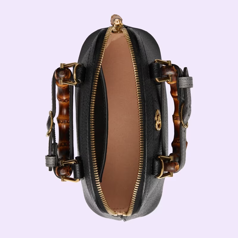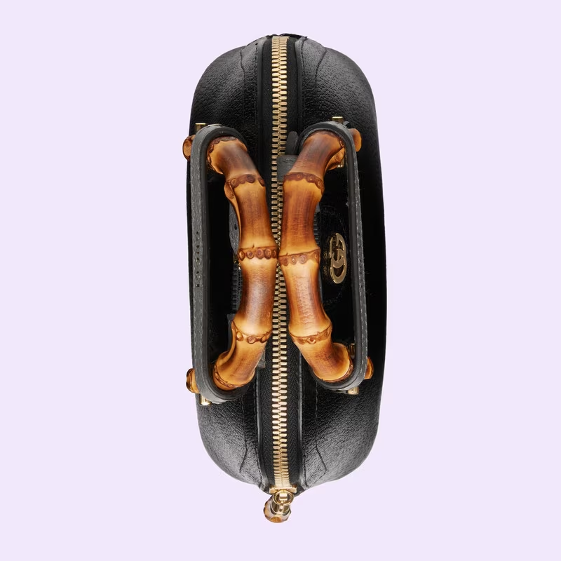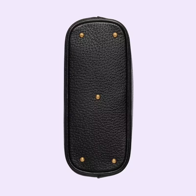 Combining recognisable elements of the House, the mini tote bag is defined by its bamboo handles and Double G hardware. Crafted from black leather, the accessory is further accentuated by two bands, a playful reference to the bands used to keep handles in shape.