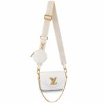 Louis Vuitton introduces the versatile New Wave Multi-Pochette crossbody handbag in quilted calf leather. With its wide strap, featuring an embroidered “Louis Vuitton” signature, gold-color chain for hand or short shoulder carry, and round coin purse clipped on the strap’s snap hook, all removable, it is the very definition of a versatile fashion accessory.