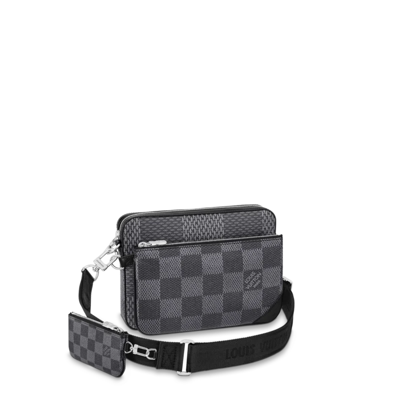 This new version of the Trio Messenger combines the versatility of a modular bag with the eye-catching elegance of Damier Graphite 3D canvas in subtle shades of gray. The removable zipped front pouch and coin purse make it a practical carrier for everyday necessities, and the adjustable strap guarantees comfortable cross-body wear.