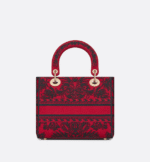 MEDIUM LADY D-LITE BAG Red and Black Ornamental Cornely-Effect Embroidery