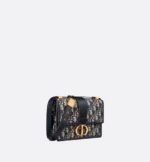 The bag enhances the 30 Montaigne line with a timeless and elegant design crafted in blue Dior Oblique jacquard. The flap has an antique gold-finish metal CD clasp, inspired by the seal of a Christian Dior perfume bottle. Other details, like the embossed 30 Montaigne signature on the back and the military-inspired buckle, highlight the streamlined design. Featuring an adjustable leather shoulder strap, the small 30 Montaigne bag can be carried by hand, worn over the shoulder or crossbody.